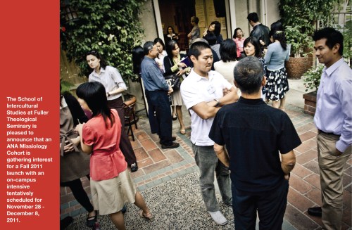 Interested? Add your name to the ANA Missiology DMiss cohort “gathering interest” list by emailing dmiss@fuller.edu. All cohorts require a minimum number of interested applicants to be launched. The launch determination deadline for the cohort is April 29, 2011.